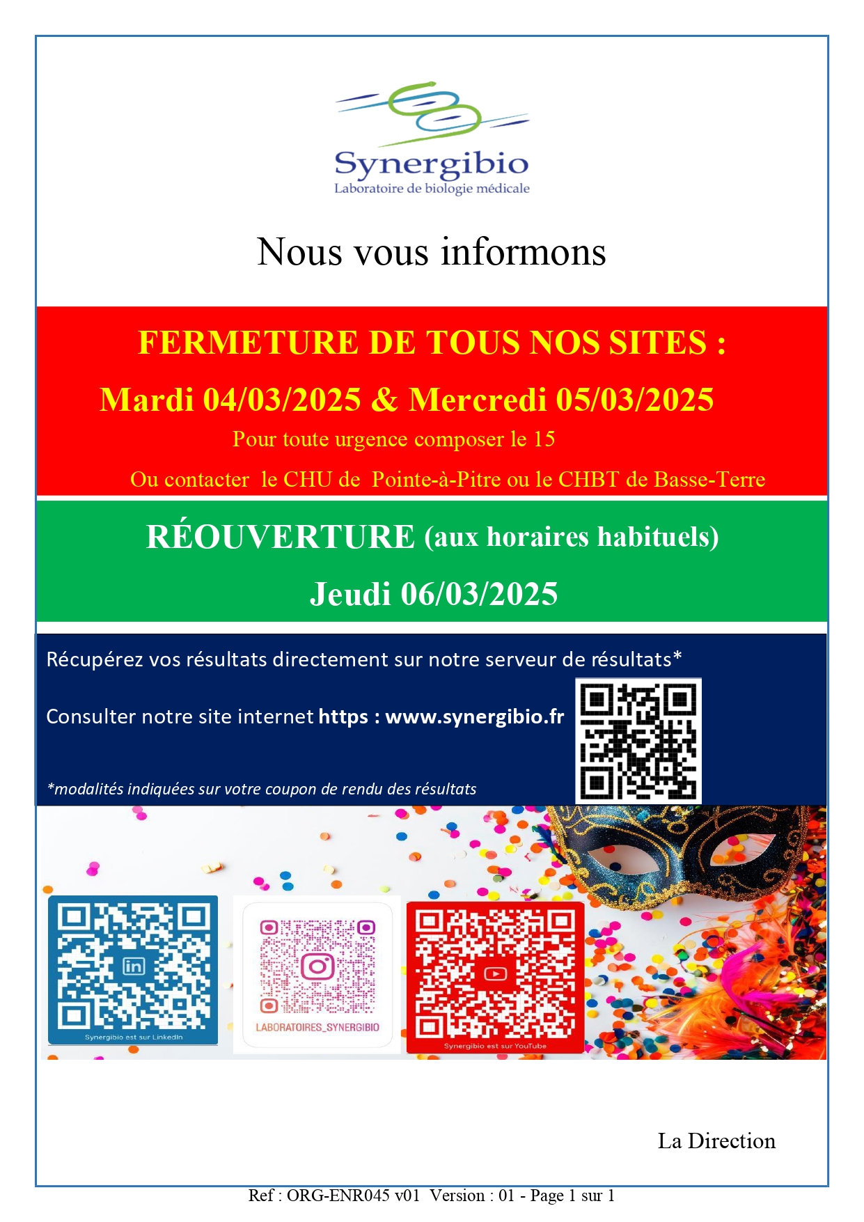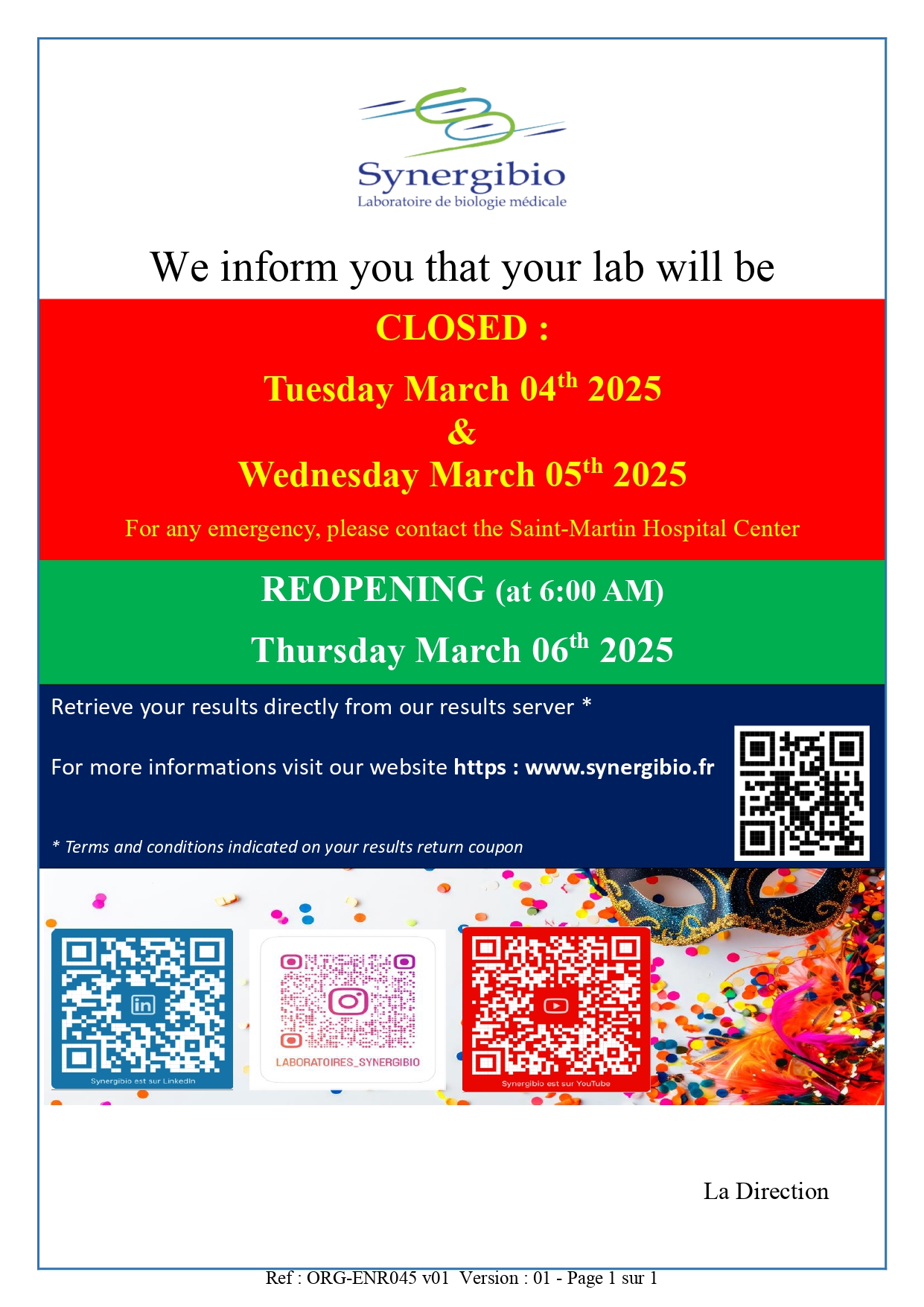 Fermeture de tous nos sites Mardi 04 et Mercredi 05 Mars 2025